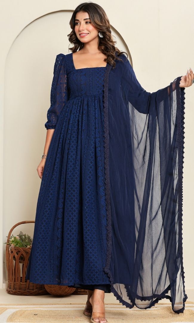 Navy Blue Georgette Anarkali Set