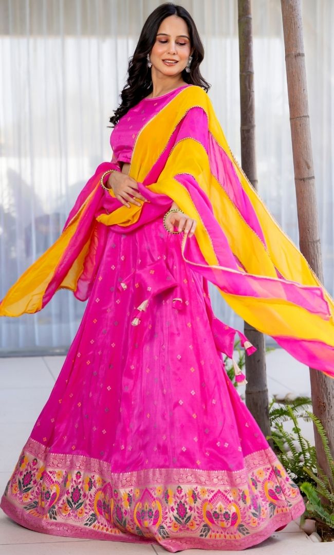 RANI PINK TRADITIONAL UMBRELLA LEHENGA BLOUSE WITH DUPATTA SET