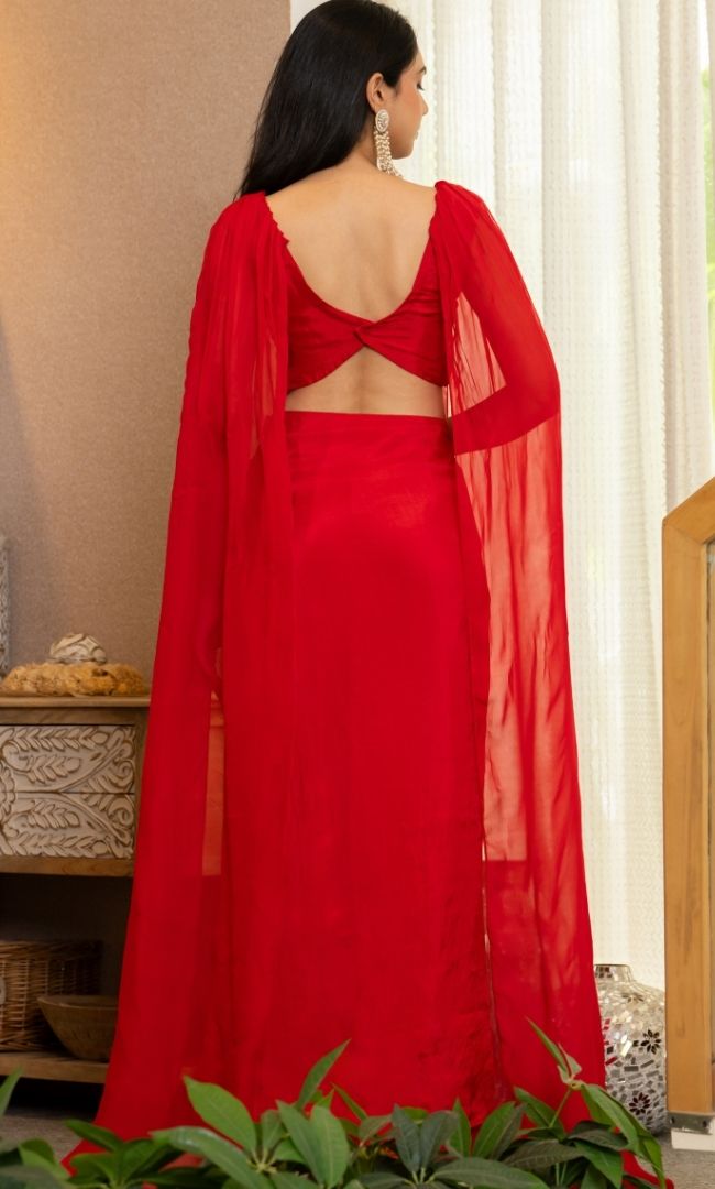 This asymmetrical two-piece set beautifully blends traditional charm with contemporary flair. The bodice is embellished with shimmering golden sequin strips that create a graceful ripple effect, adding elegance and sparkle. Perfect for special occasions and festive celebrations.