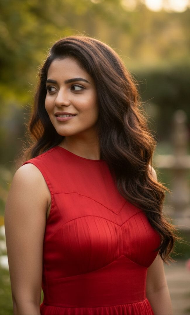 This vibrant red floor-length gown is meticulously crafted from luxurious modal satin, offering a brilliant sheen and a silky-smooth drape. The sleeveless design features a sophisticated high neckline and a cinched waist that flows into a voluminous pleated skirt, creating a timeless and regal silhouette.