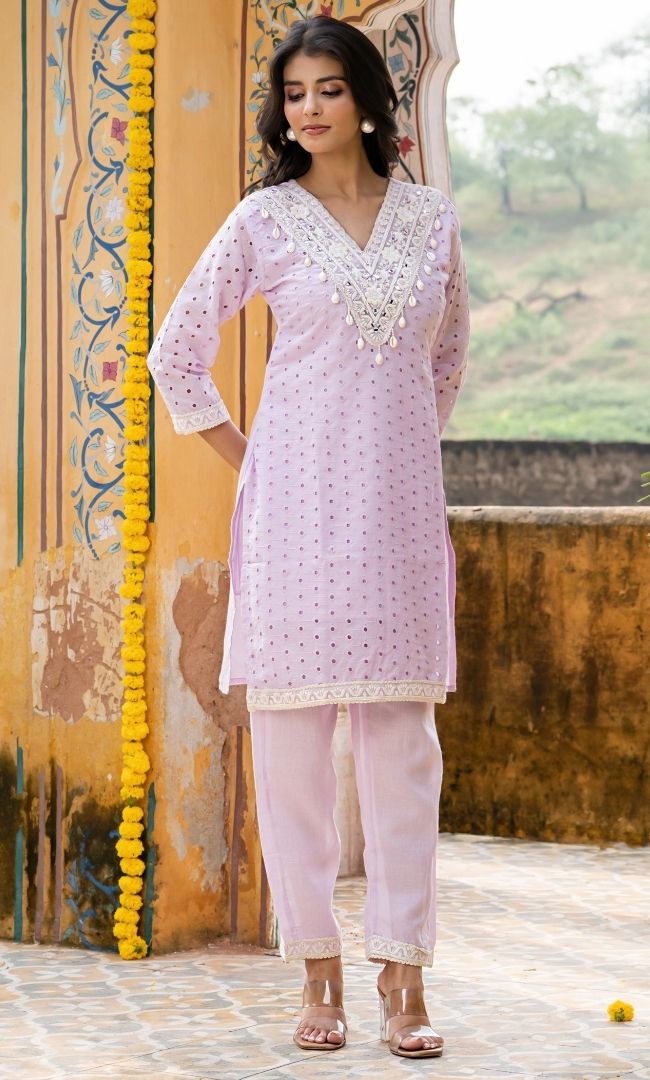 PEARL CHIKANAKRI TOP WITH PANT SET