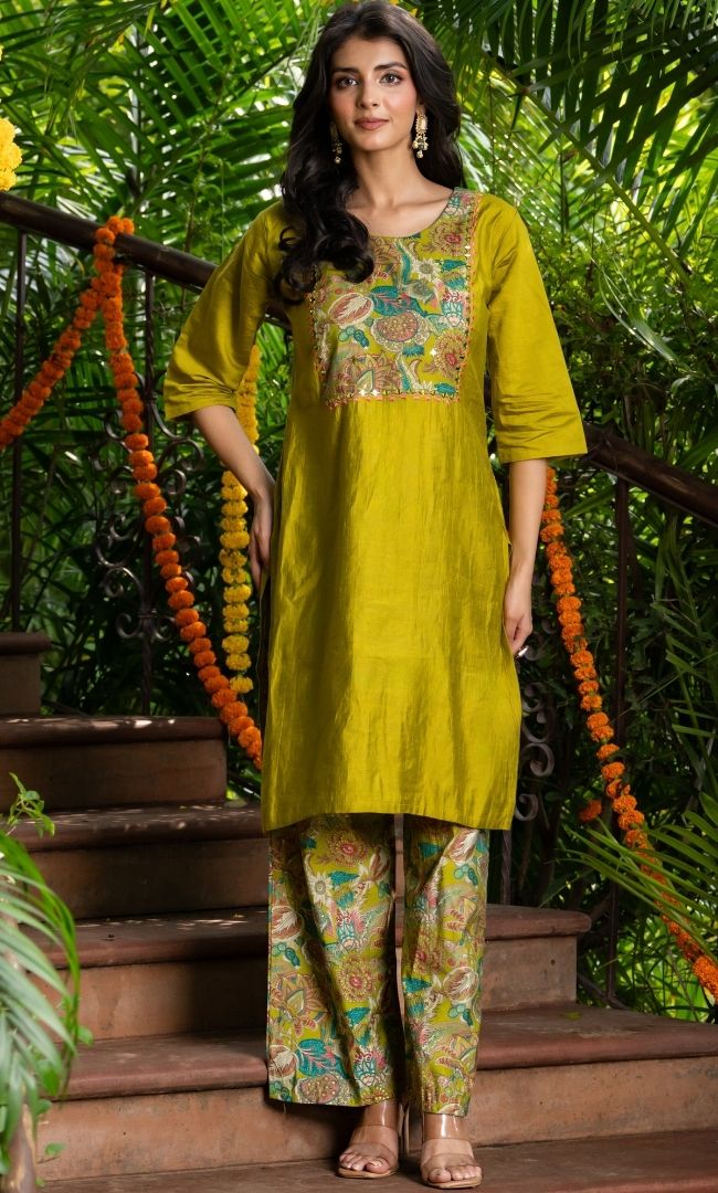 Zyra Lime Kurta Co ord Set