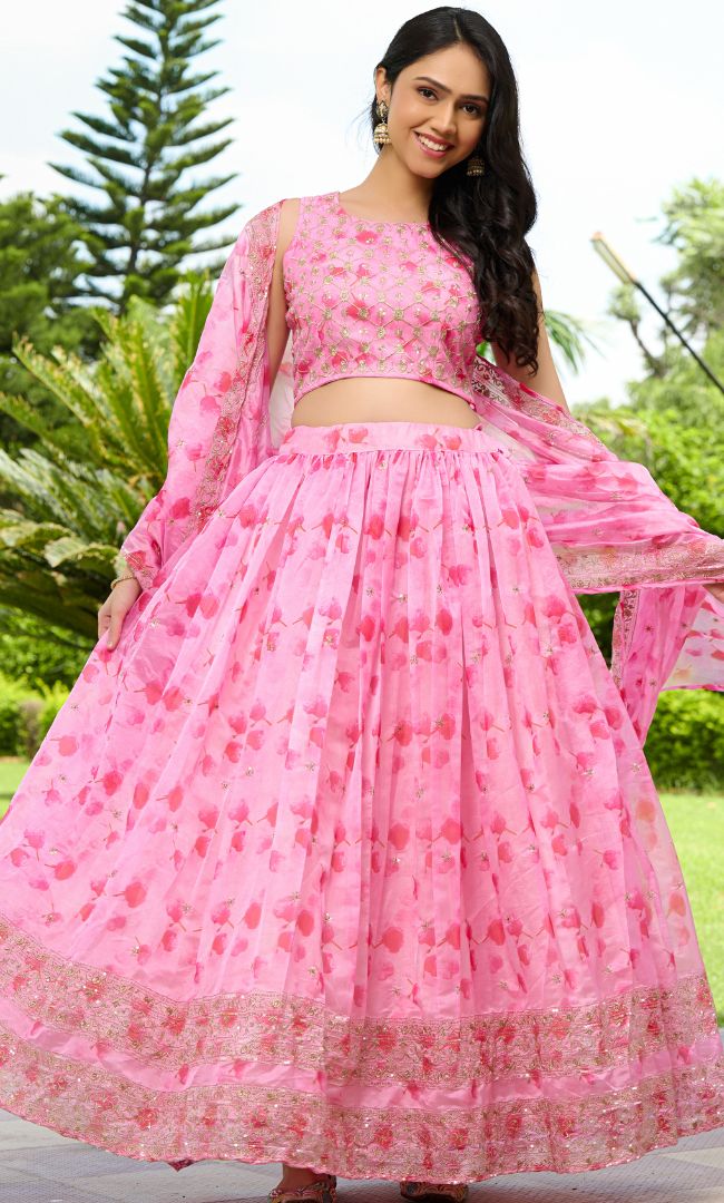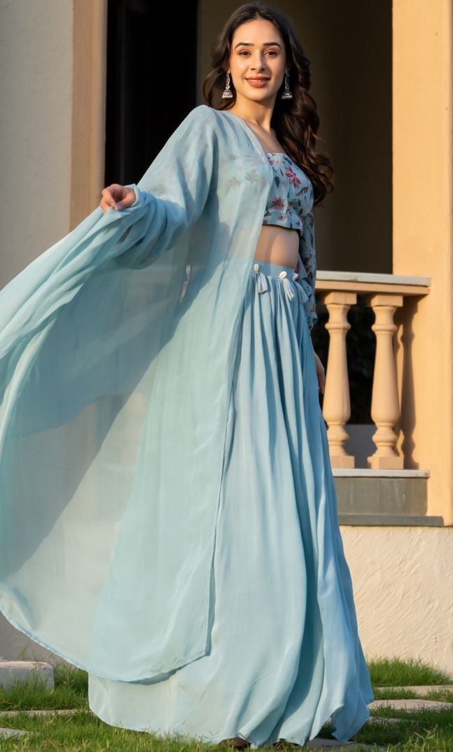 Green-Leheriya Kalidar Lehenga & Mirror Work Blouse With Dupatta Set