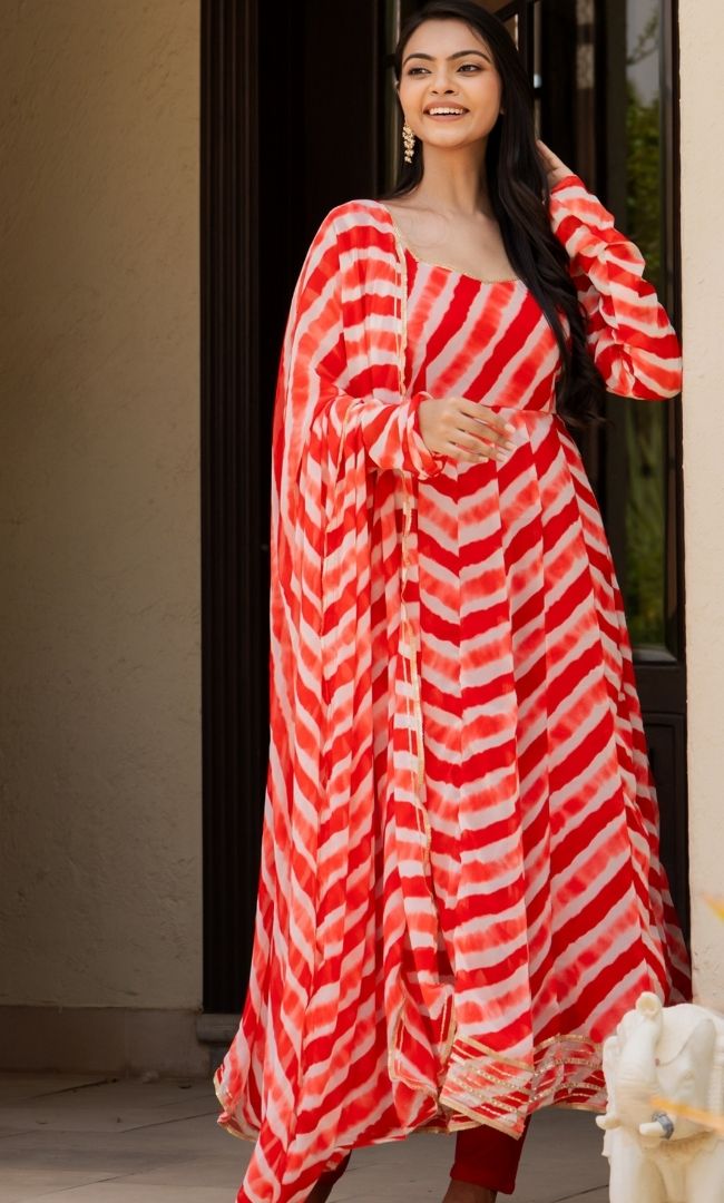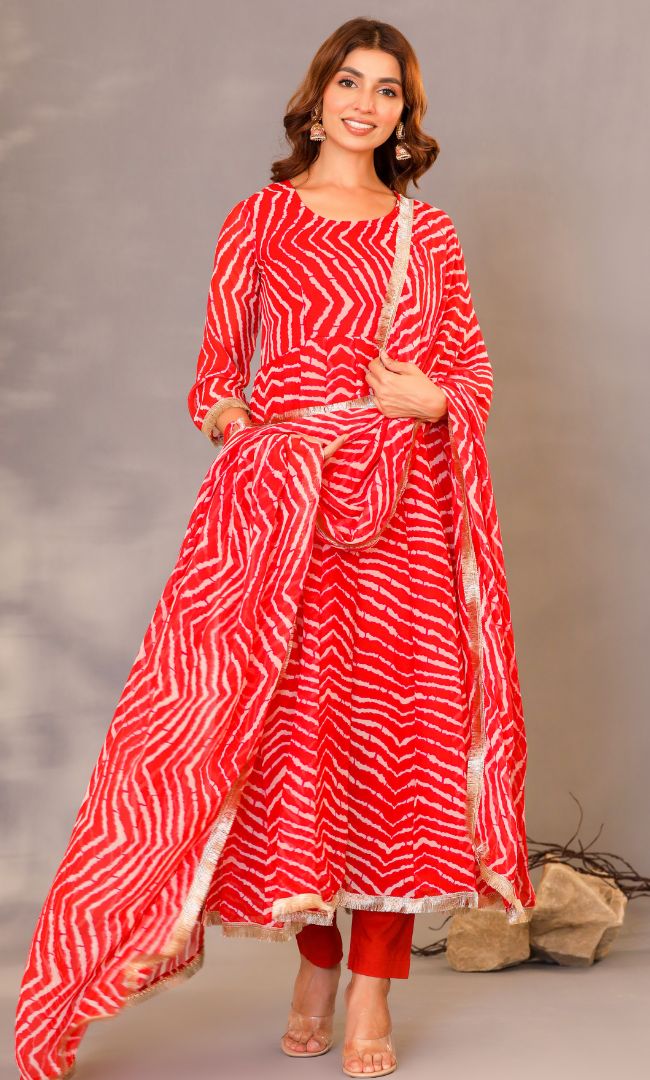 Leheriya Red Anarkali Set