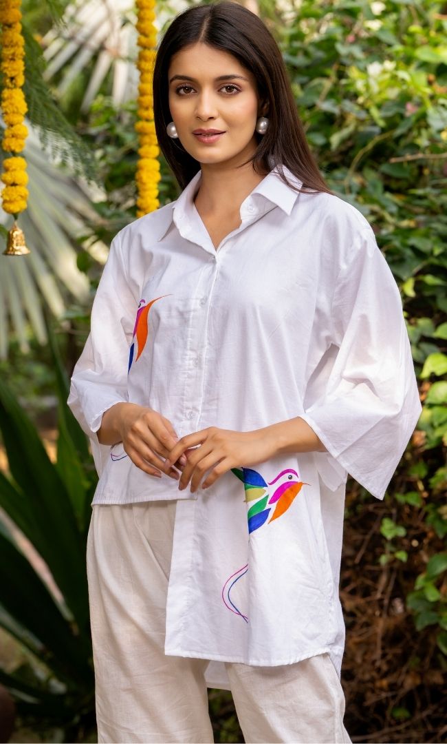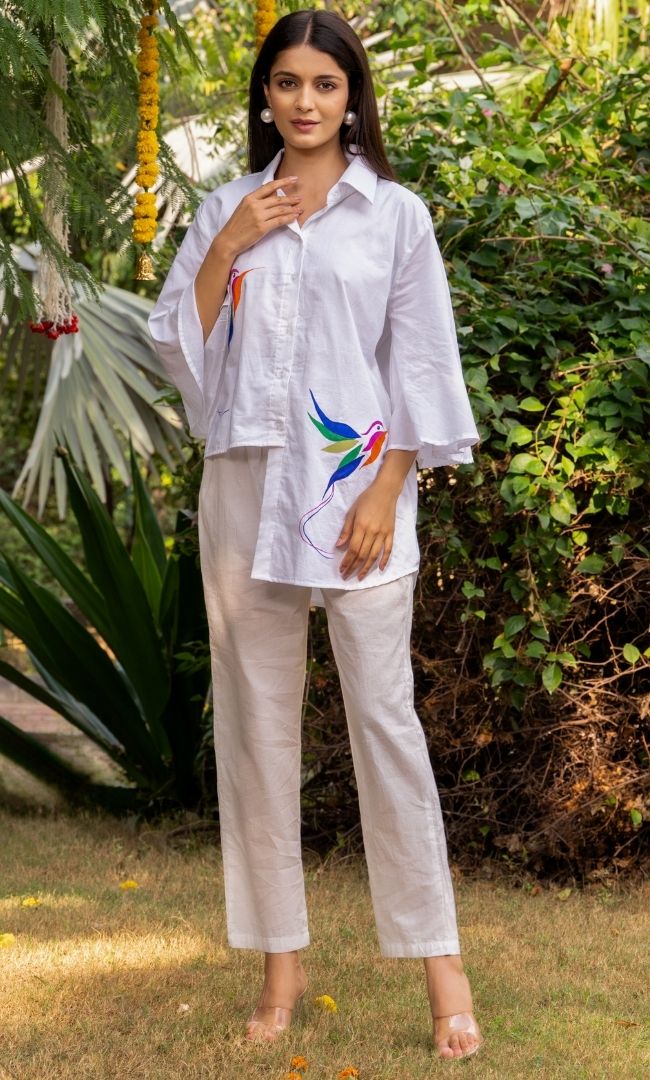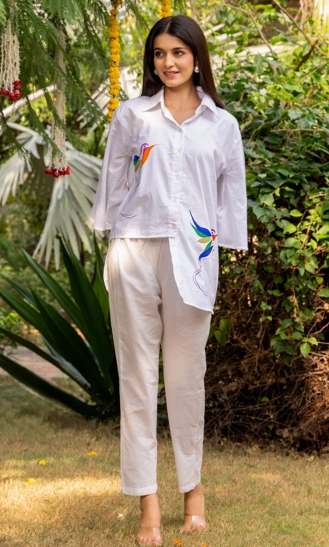 A cozy, stylish outfit for the woman who's comfortable and light on her feet! Our Palette Play white Co-Ord set Set is an original handpainted design that goes well with any OCASSION . With its soft fabric, comfortable fit and hand painted pattern, it will add a touch of style in your wardrobe.