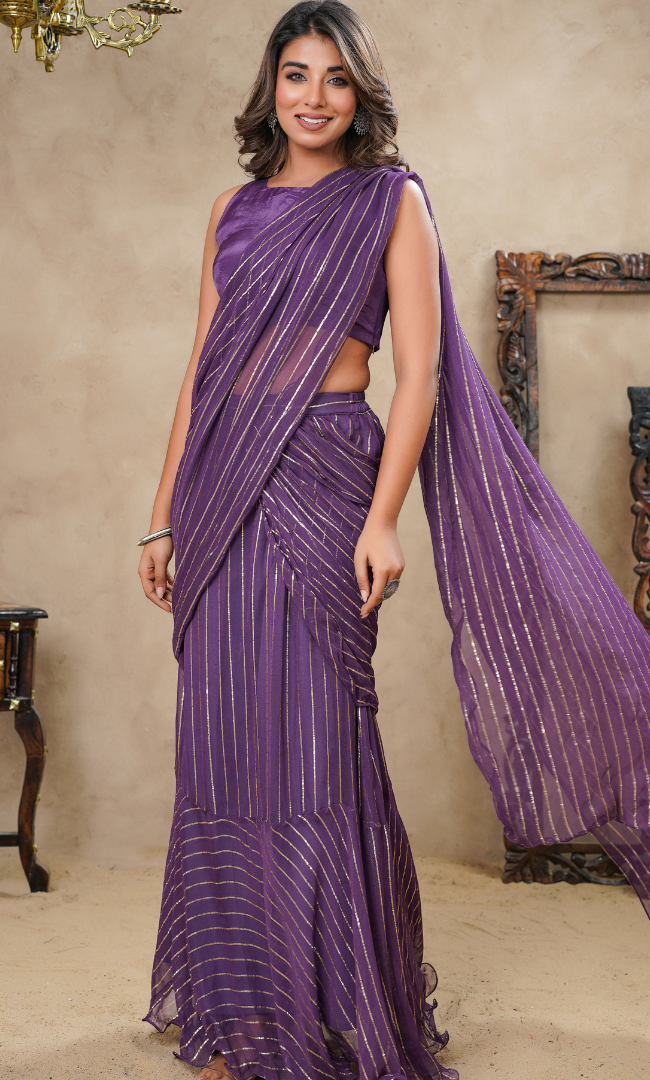 Zigzag Cutdana Lines and Circular Pattern With Stones Saree