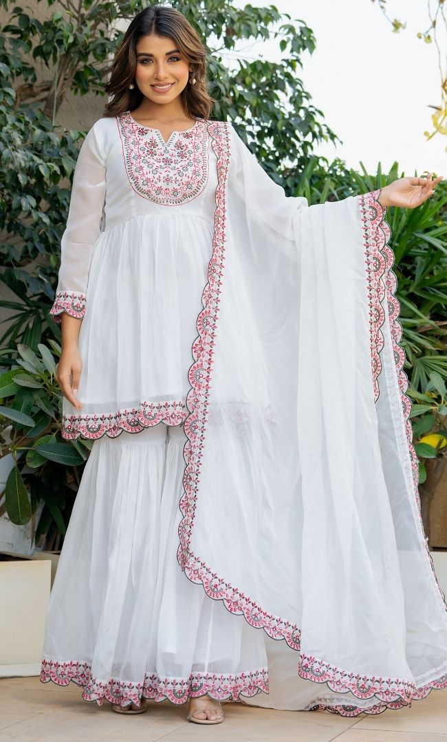 Swan White Organza Sharara Set