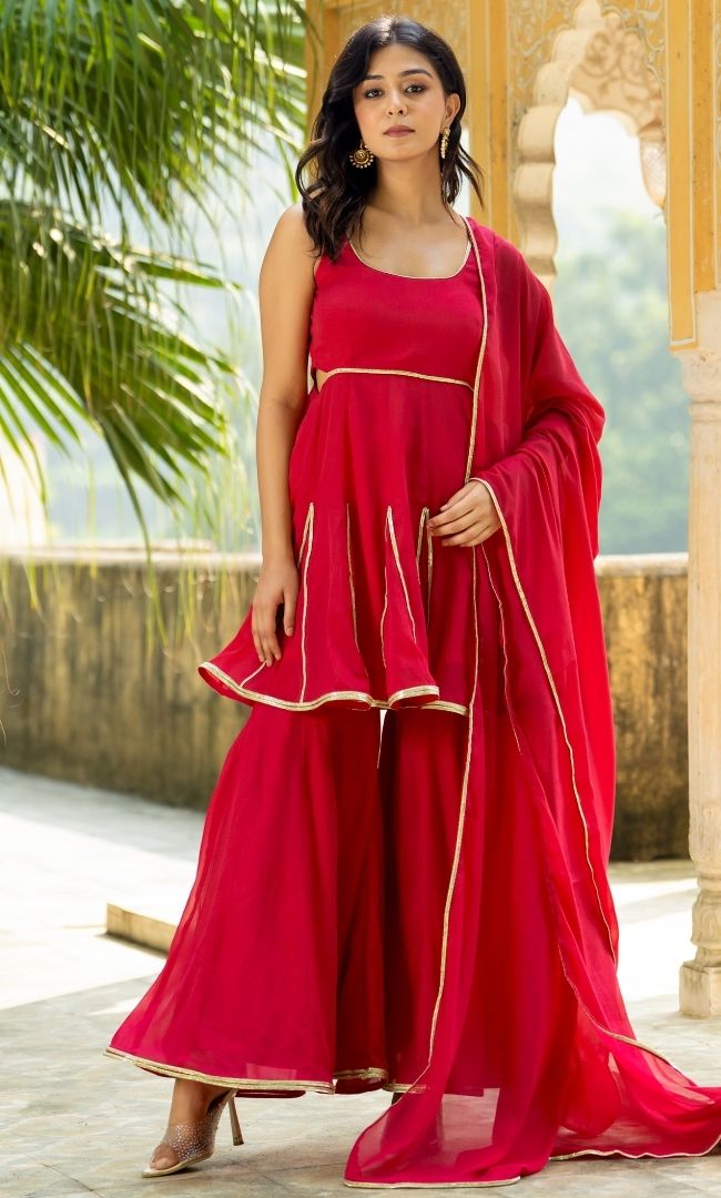 BLOOD RED HANDWORK SHARARA SET