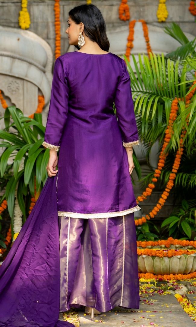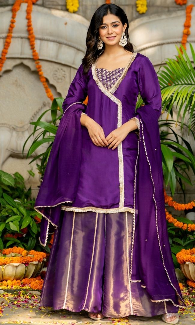 Elevate your ethnic wardrobe with our stunning kurta sarara set, featuring intricate Aada work embroidery.